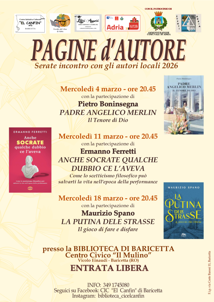 Pagine d’Autore è la rassegna letteraria nata da un’idea della nostra Associazione, in collaborazione con altre realtà culturali diffuse sul territorio, come il Presidio del Libro di Adria, e librerie indipendenti.