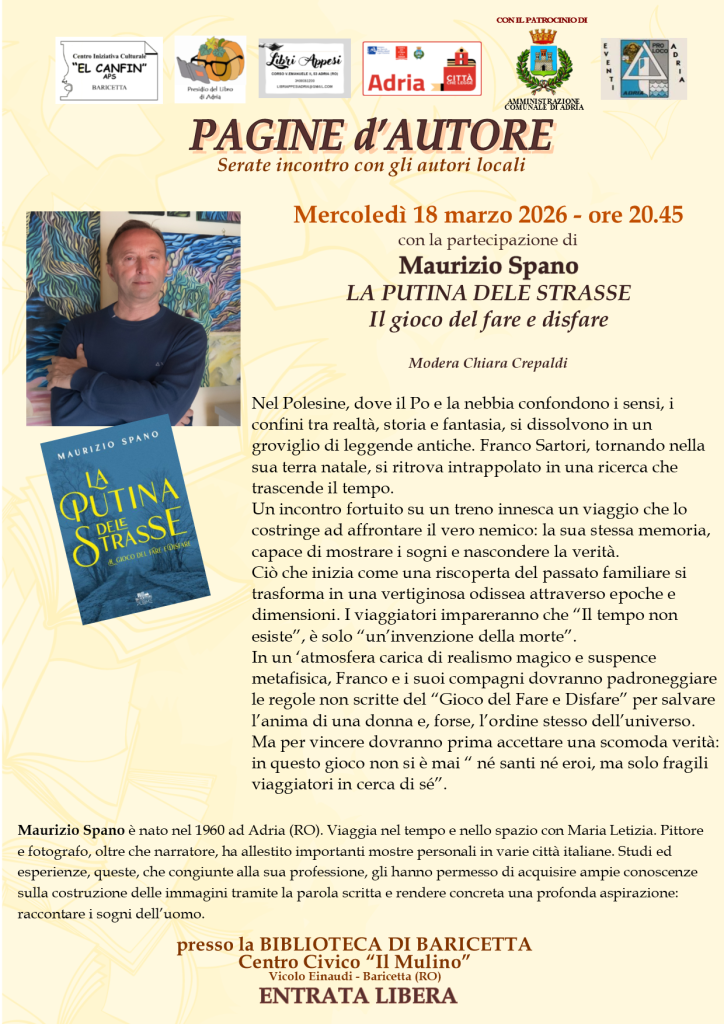 Maurizio Spano è nato nel 1960 ad Adria (RO). Viaggia nel tempo e nello spazio con Maria Letizia. Pittore e fotografo, oltre che narratore, ha allestito importanti mostre personali in varie città italiane. Studi ed esperienze, queste, che congiunte alla sua professione, gli hanno permesso di acquisire ampie conoscenze sulla costruzione delle immagini tramite la parola scritta e rendere concreta una profonda aspirazione: raccontare i sogni dell’uomo.
